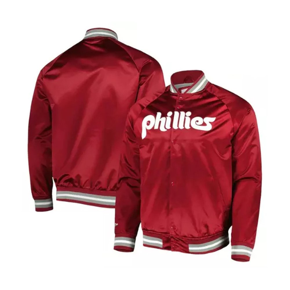 This Mitchell & Ness Cooperstown Collection jacket not only celebrates the legacy of the Philadelphia Phillies but also pays homage to the golden era of baseball with its vintage-inspired design. The XXL sizing ensures a comfortable, roomy fit, perfect for layering over other clothing.