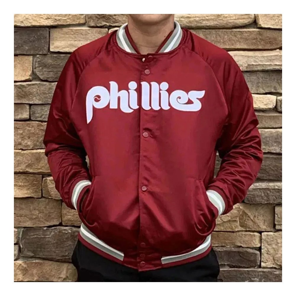The embroidered Philadelphia Phillies logo on the chest highlights authentic MLB team pride, while detailed stitching and premium finishing elevate the jacket’s overall design. Its soft interior lining adds warmth and comfort, making it suitable for cooler weather and all-day wear. The relaxed fit provides freedom of movement without feeling bulky, allowing fans to show their support in style and comfort.