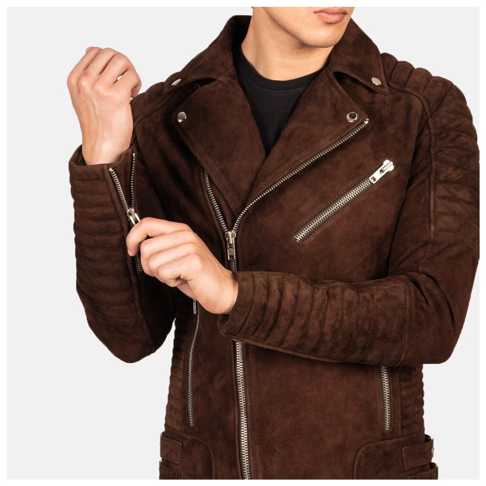 Perfect for transitional weather, the Armand Mocha Suede Biker Jacket pairs effortlessly with denim, chinos, or layered over a crisp shirt. Whether you’re aiming for an edgy street-style look or a polished ensemble, this jacket adds character and confidence to any outfit. It’s a wardrobe staple that combines modern elegance with classic rebellion.