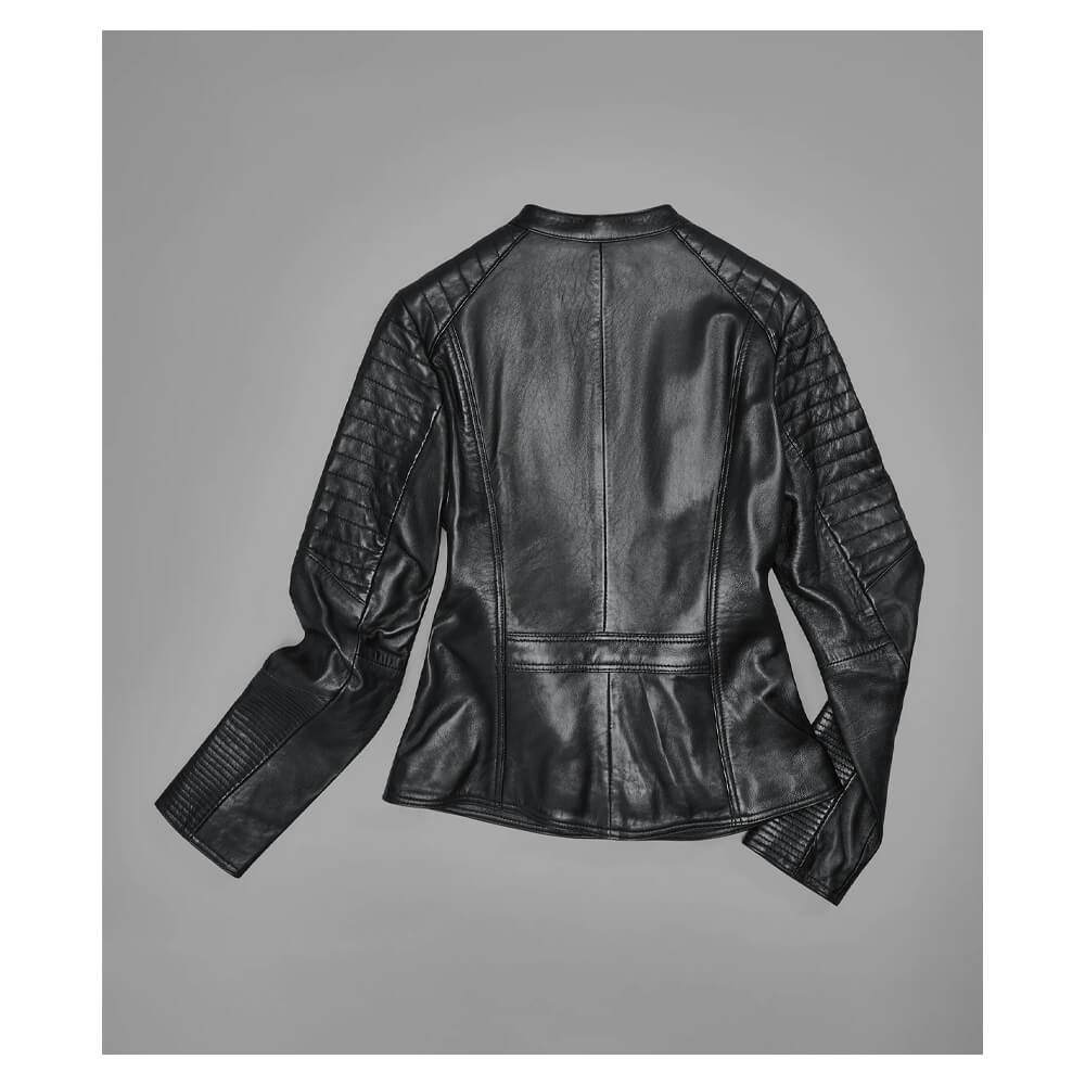 Elevate your wardrobe with the Black Women’s Padded Leather Biker Jacket, designed to combine edgy style with practical comfort. Crafted from premium-quality leather, this jacket features a smooth, sleek finish that instantly enhances any outfit. The padded panels on the shoulders and sleeves add a bold, structured look while providing extra durability and a touch of moto-inspired flair.