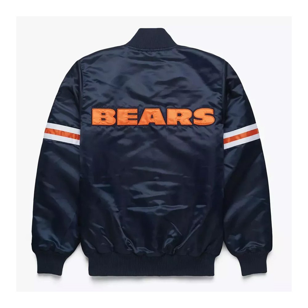 Crafted from high-quality satin material, the jacket delivers a smooth, polished finish that catches the eye while remaining lightweight and durable. Its rich navy color, accented with the iconic orange Bears details, makes a bold statement, showcasing your loyalty to your favorite team. The rib-knit collar, cuffs, and waistband provide a snug fit that keeps warmth in, while the full-front zipper allows for easy layering over hoodies, tees, or casual shirts.