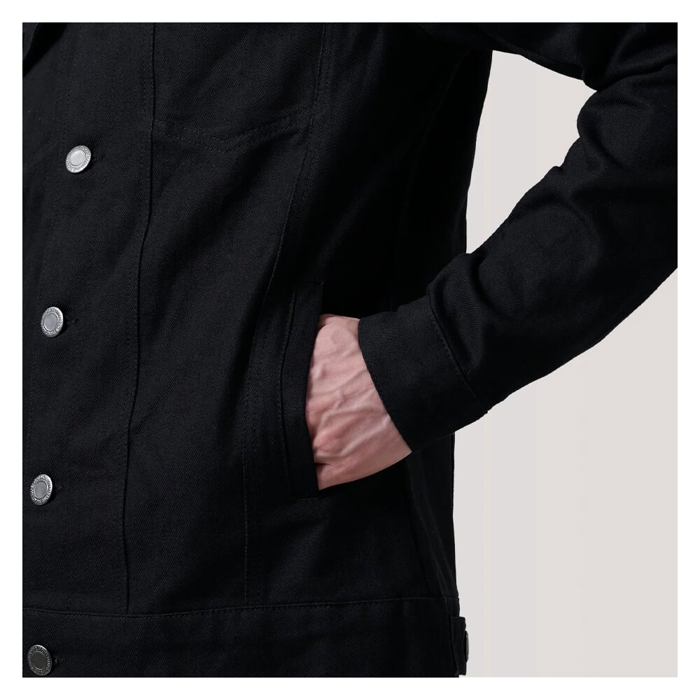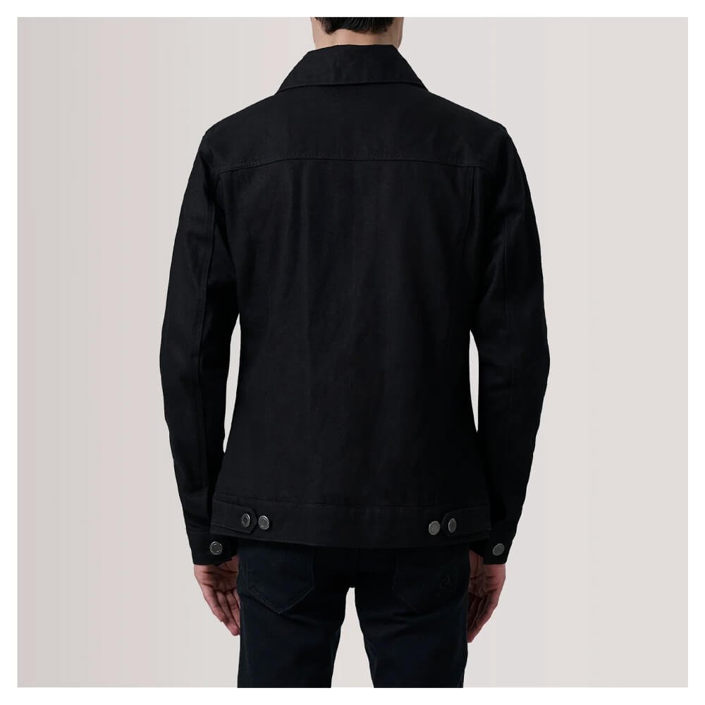 Elevate your casual wardrobe with the Conard Black Denim Jacket, a perfect blend of classic style and modern versatility. Crafted from premium 100% cotton black denim, this jacket delivers durability without compromising comfort. Its timeless trucker-inspired design features a sharp shirt-style collar, button-front closure, and four exterior pockets, combining practicality with iconic style. Whether layered over a t-shirt for a relaxed weekend look or paired with a hoodie for cooler days, this jacket adapts effortlessly to your lifestyle.