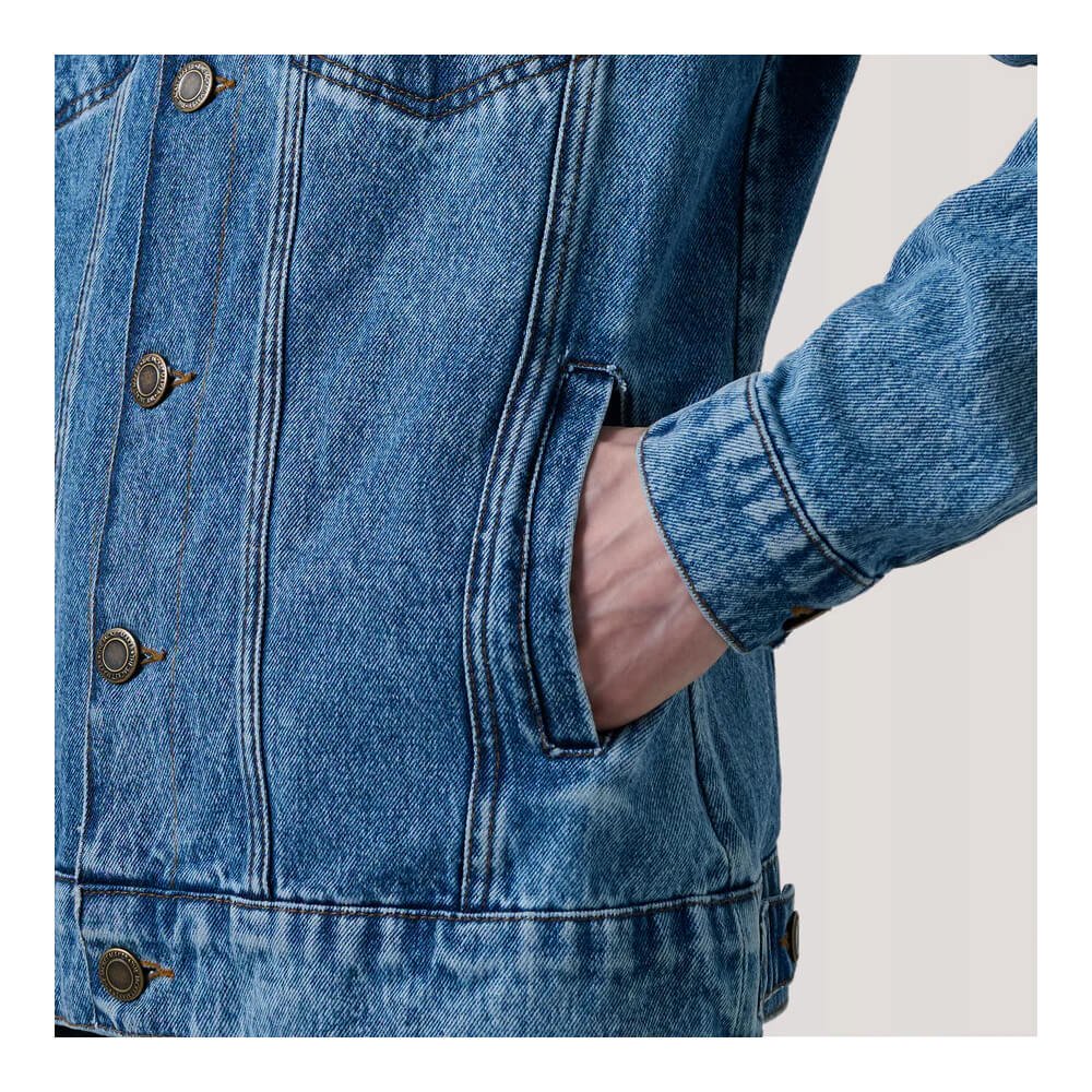 The jacket features a classic trucker-inspired design, including a structured shirt-style collar, button-front closure, and four exterior pockets, combining practicality with timeless style. Adjustable waist tabs and buttoned cuffs allow for a personalized fit, while reinforced stitching and high-quality buttons ensure long-lasting wear. Lightweight yet sturdy, it is ideal for layering over t-shirts, hoodies, or sweaters, adapting seamlessly to different seasons and occasions.