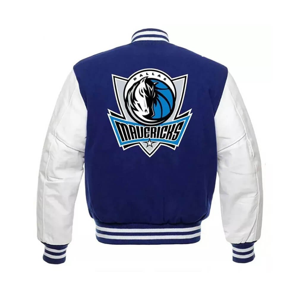 Celebrate your favorite team in style and comfort with the Dallas Mavericks Blue & White Varsity Jacket—where timeless design meets unmistakable fan spirit.