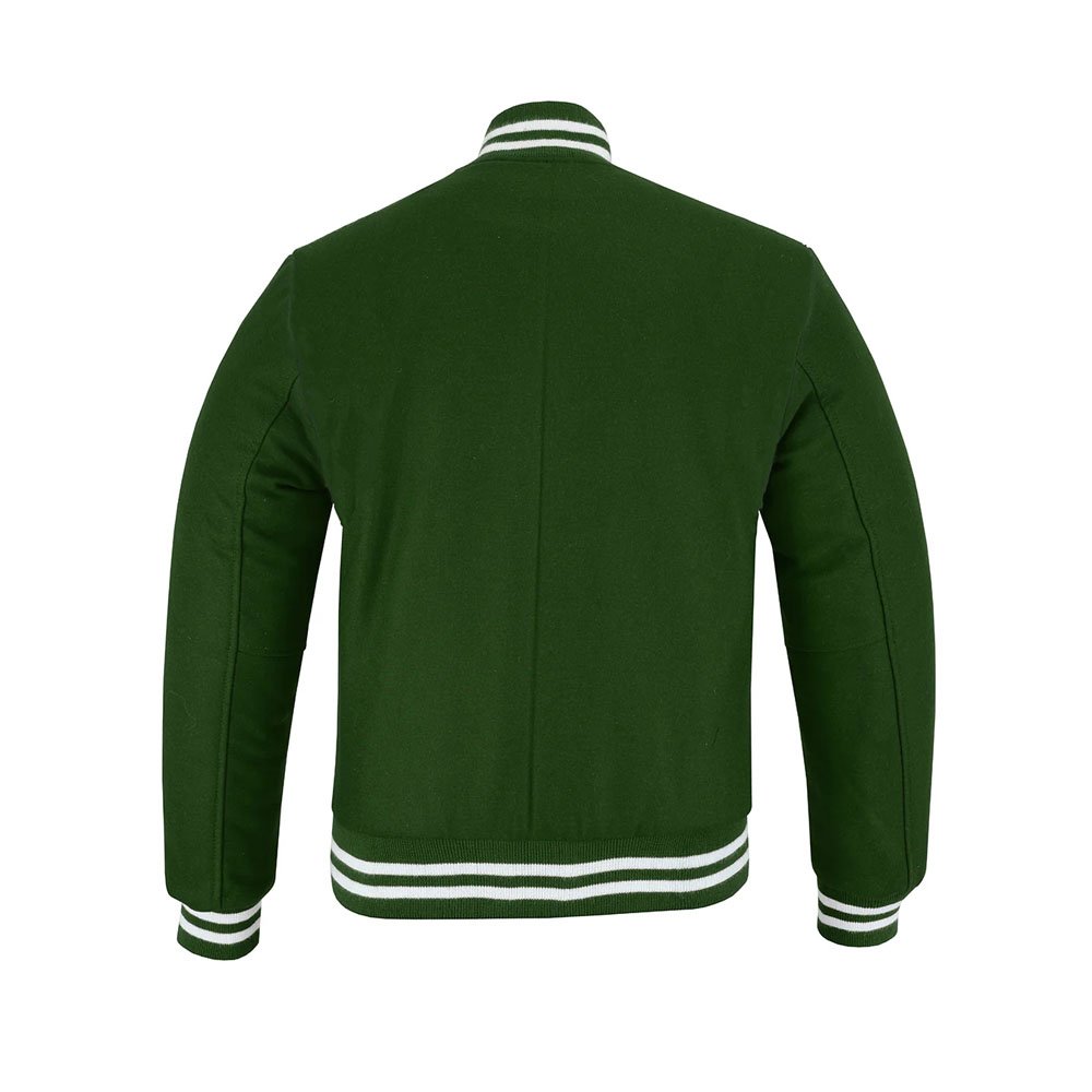 The Forest Green Varsity Letterman Jacket is a timeless outerwear piece inspired by classic athletic style. Featuring a deep forest green body with crisp white trim, it delivers a refined yet bold look that never goes out of fashion. The traditional varsity silhouette, complete with ribbed collar, cuffs, and hem, ensures a comfortable fit while maintaining the authentic letterman design.