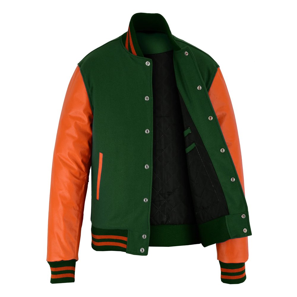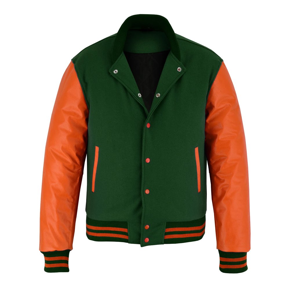 Ideal for students, athletes, and fashion enthusiasts, the Green and Orange Varsity Letterman Jacket brings a mix of classic collegiate style and contemporary flair. Make it your go-to jacket for casual wear, autumn and winter outings, and street-style fashion that never goes unnoticed.