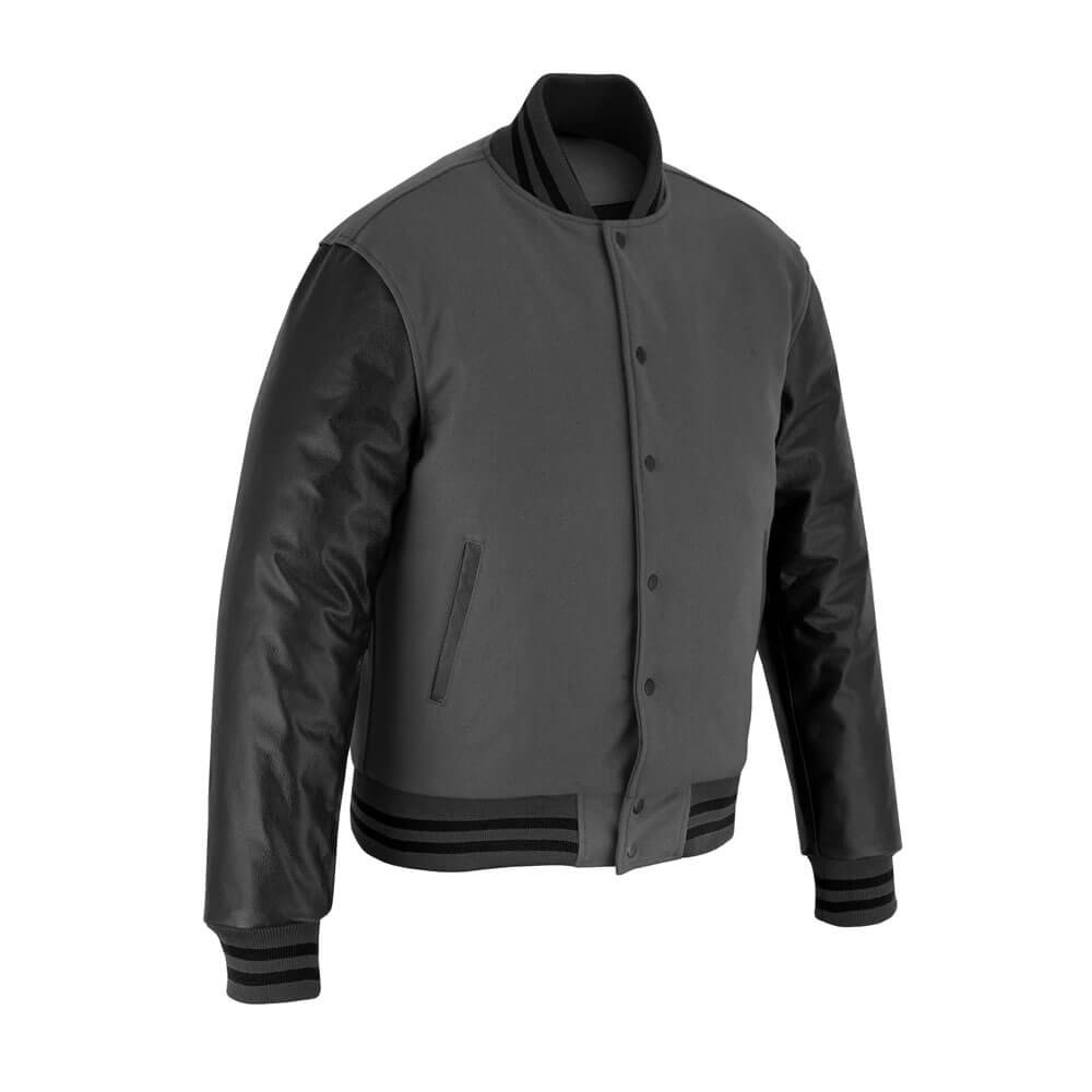The Grey & Black Leather Varsity Jacket offers a timeless and stylish look. It combines classic varsity design with modern fashion. The color contrast makes the jacket stand out. It is perfect for casual and everyday wear.