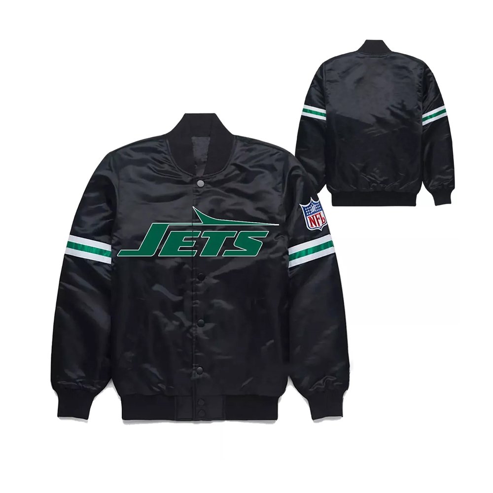 The Jets Satin Varsity Jacket delivers classic varsity style and bold New York Jets pride. It lets fans showcase team spirit with confidence. Wear it on game days, casual outings, or any day you want to celebrate your team.