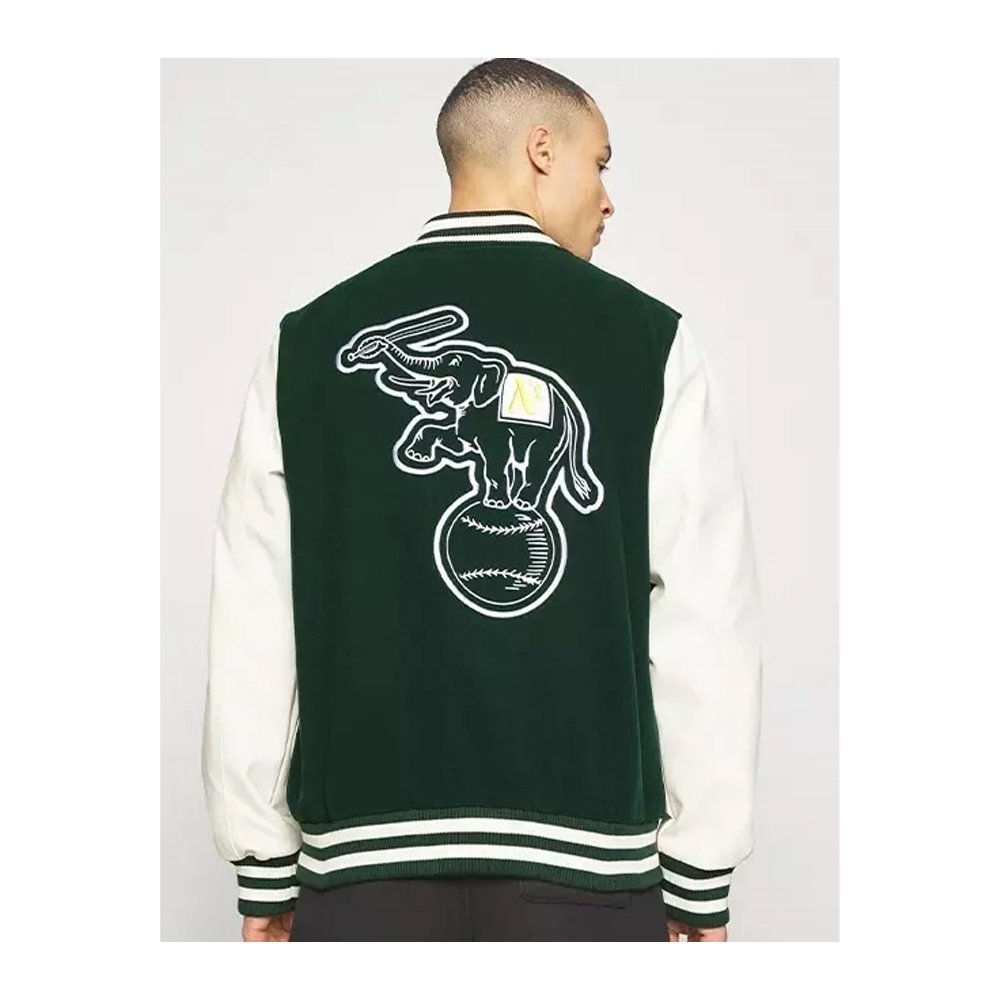 Celebrate the legacy of the Oakland Athletics with this iconic wool and leather varsity jacket. Its blend of classic letterman design, premium materials, and embroidered detailing creates a timeless piece that stands out in any wardrobe. Whether you’re a dedicated fan, collector, or someone who appreciates vintage-inspired sportswear, the Oakland A’s Wool & Leather Varsity Jacket is a stylish, durable, and functional addition to your outerwear collection.