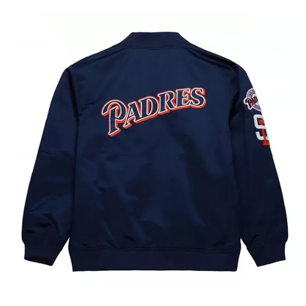 Celebrate the heritage of the San Diego Padres with this Mitchell & Ness satin bomber jacket. Its high-quality construction, embroidered detailing, and classic design make it a timeless piece for collectors, dedicated fans, and anyone who loves retro MLB fashion. Whether you’re heading to the ballpark, a fan event, or just want to showcase team spirit in streetwear, the Padres Navy Satin Jacket combines comfort, durability, and iconic vintage style.