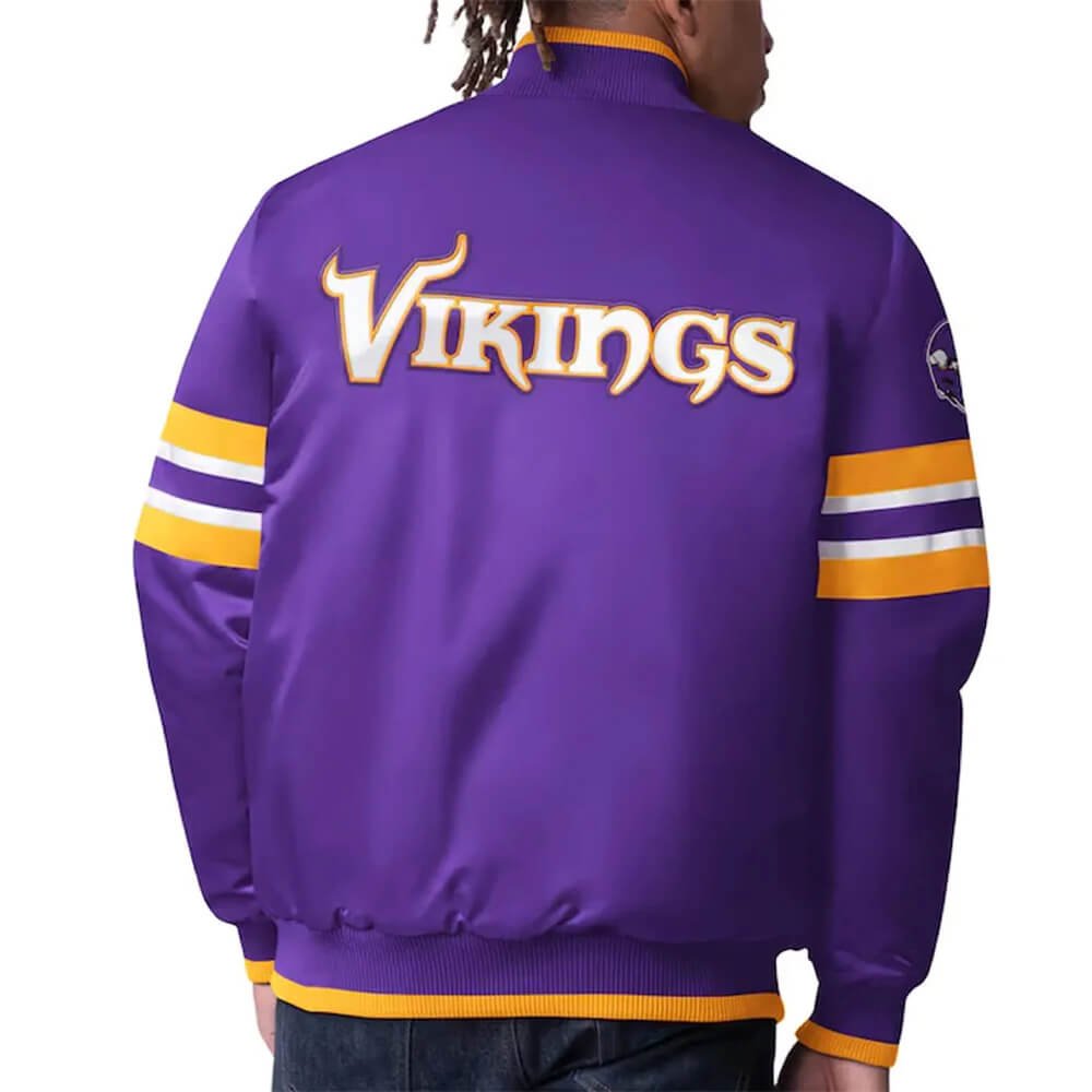 Upgrade your outerwear collection with this stylish Minnesota Vikings Purple Satin Varsity Jacket. Designed for fans who want to represent their team with confidence and classic fashion. Inspired by timeless varsity style, this jacket features a bold purple satin exterior paired with striking gold and white striped sleeve detailing that captures the unmistakable spirit of the Vikings.