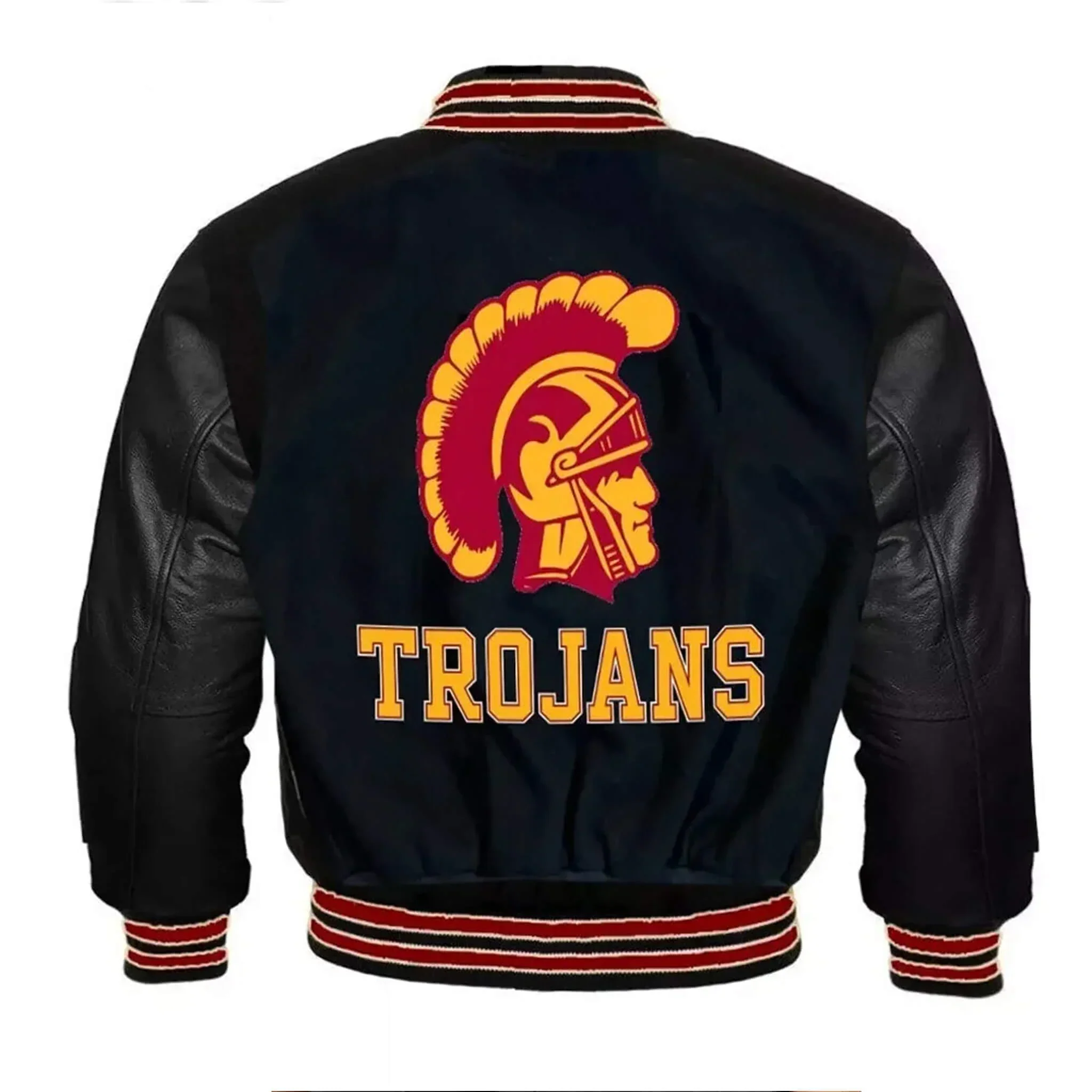Whether you’re cheering in the stadium, heading to class, or representing your team around town, the USC Trojans Blackout Varsity Letterman Jacket keeps you comfortable and stylish. It’s the perfect choice for fans who want a classic collegiate look with a modern blackout twist.
