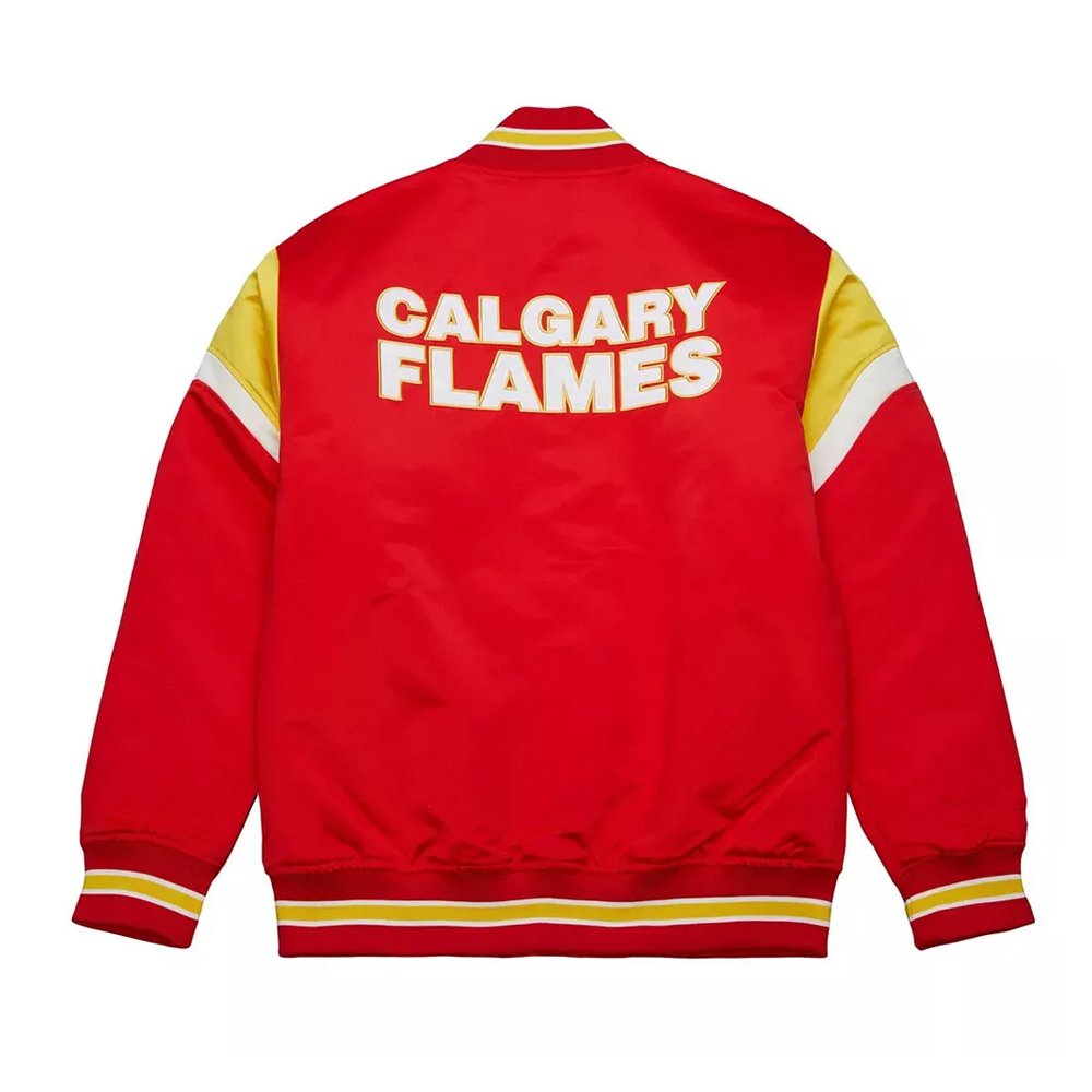 This jacket pairs perfectly with jeans, sweatpants, or layered over hoodies, creating a versatile game-day or everyday outfit. With timeless varsity style, premium materials, and bold team detailing, the Mitchell & Ness Calgary Flames Heavyweight Satin Jacket is the ultimate choice for fans who want to combine comfort, durability, and standout team pride in one iconic piece.
